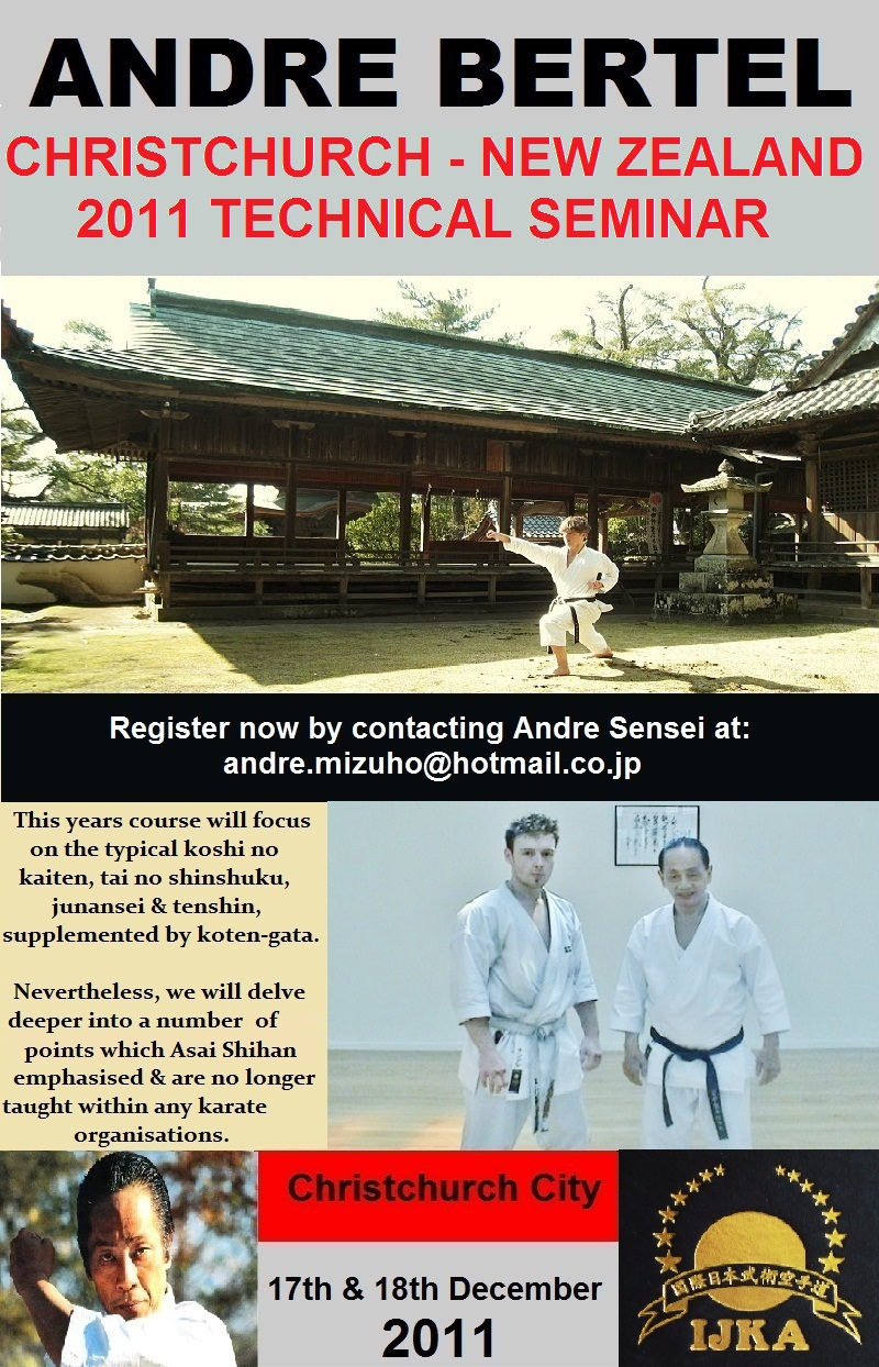I have many projects in the works at present. The next seminar in Christchurch will be a second wave of technical aspects I've not taught openly before. `Step-by-step' I am uncovering the karate I have been taught and the critical elements required to execute it. As those who have attended my seminars and lessons know, this karate is not sports karate!